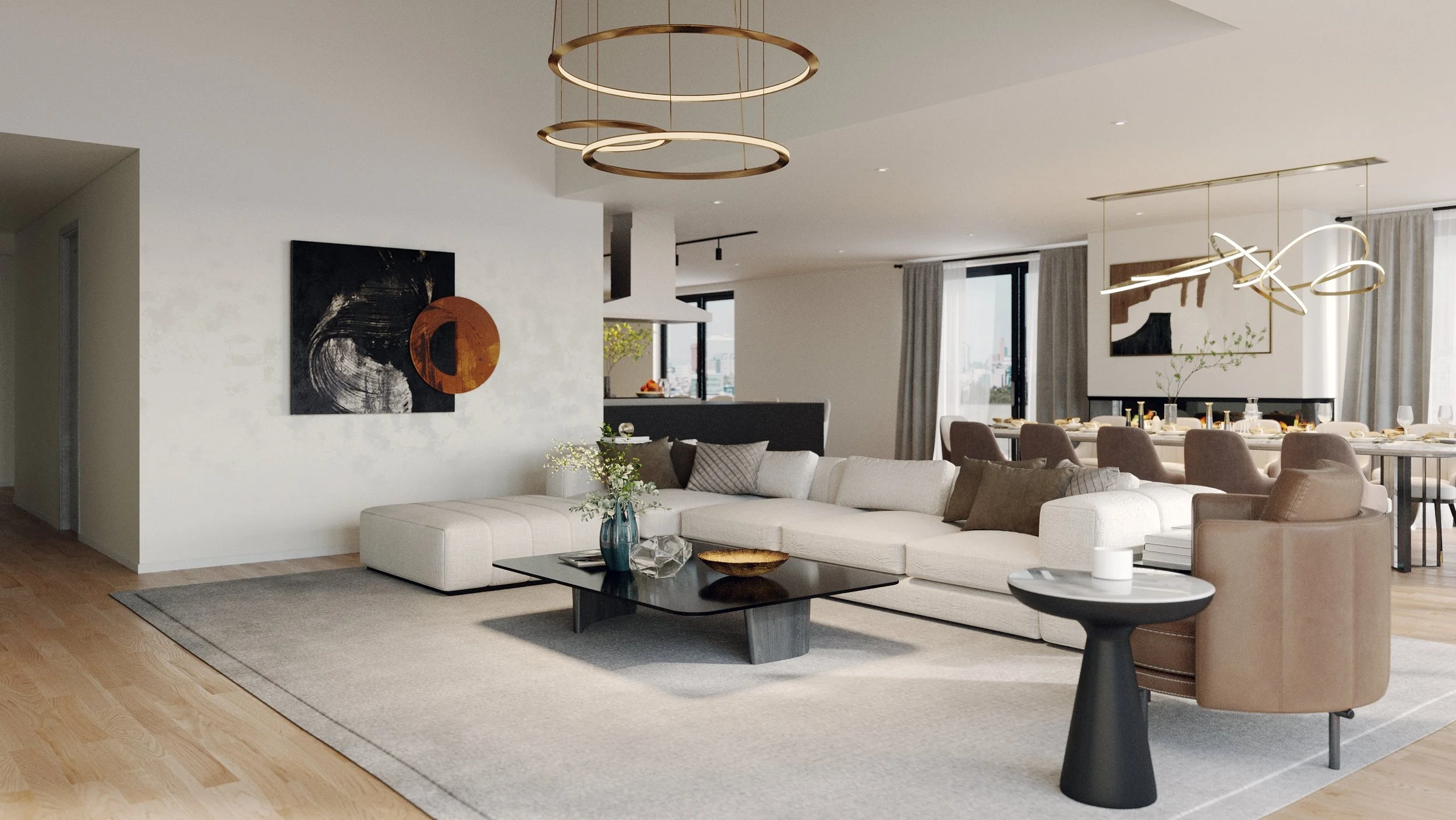 Each residence features Italian-crafted cabinetry, rich hardwood flooring, and refined European finishes, creating an atmosphere of timeless elegance. Floor-to-ceiling windows bathe the open corner floor plans in natural light, while private terraces—some reaching up to 1,500 sq. ft.—offer a tranquil retreat in the city’s most coveted neighborhood.